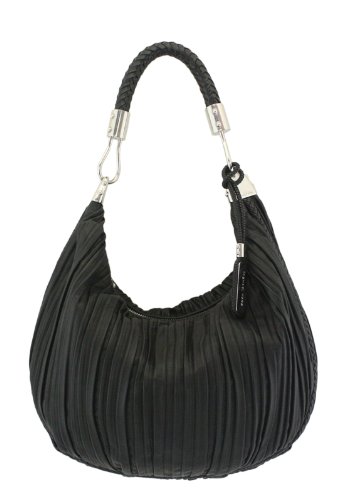 Michael Kors Skorpios Pleated Leather Crescent Hobo Black Bag
